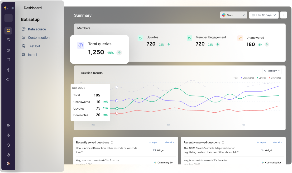 Unlock a comprehensive view of your AI's performance. From feedback to queries solved, effortlessly drive improvements and build a support experience that feels like magic.