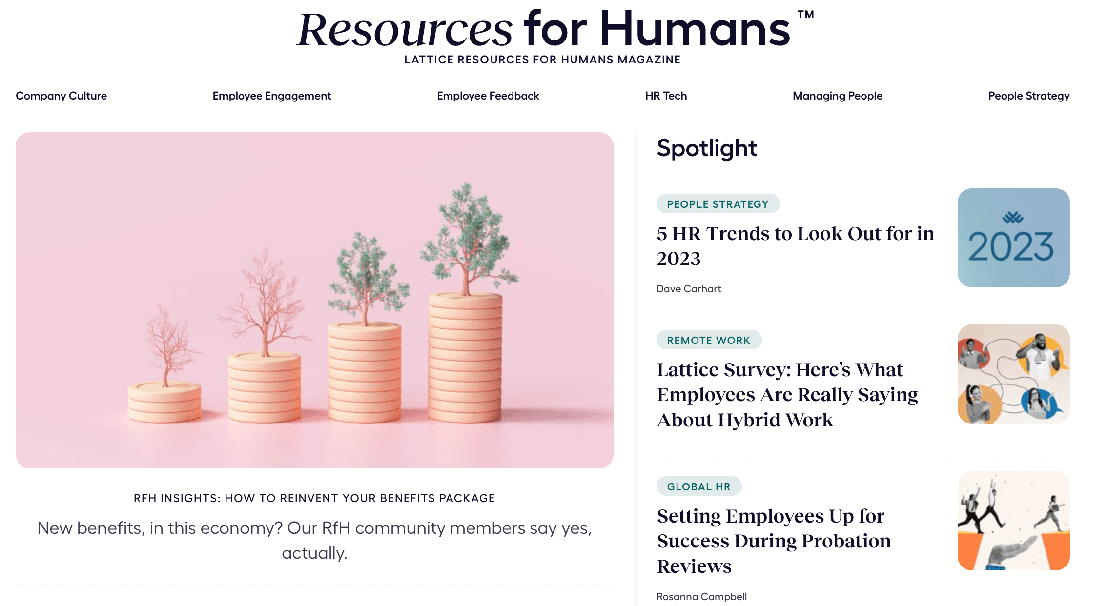 The RfH magazine is a beautifully curated content magazine just for HR and People Leaders, featuring People-focused articles, stories for and about the RfH community, ideas for HR-focused events you’ll want to attend, info on the latest HR trends, and other resources. Get tech recommendations, check out on-demand webinars, and read articles on strategies, feedback, culture, and a lot more.