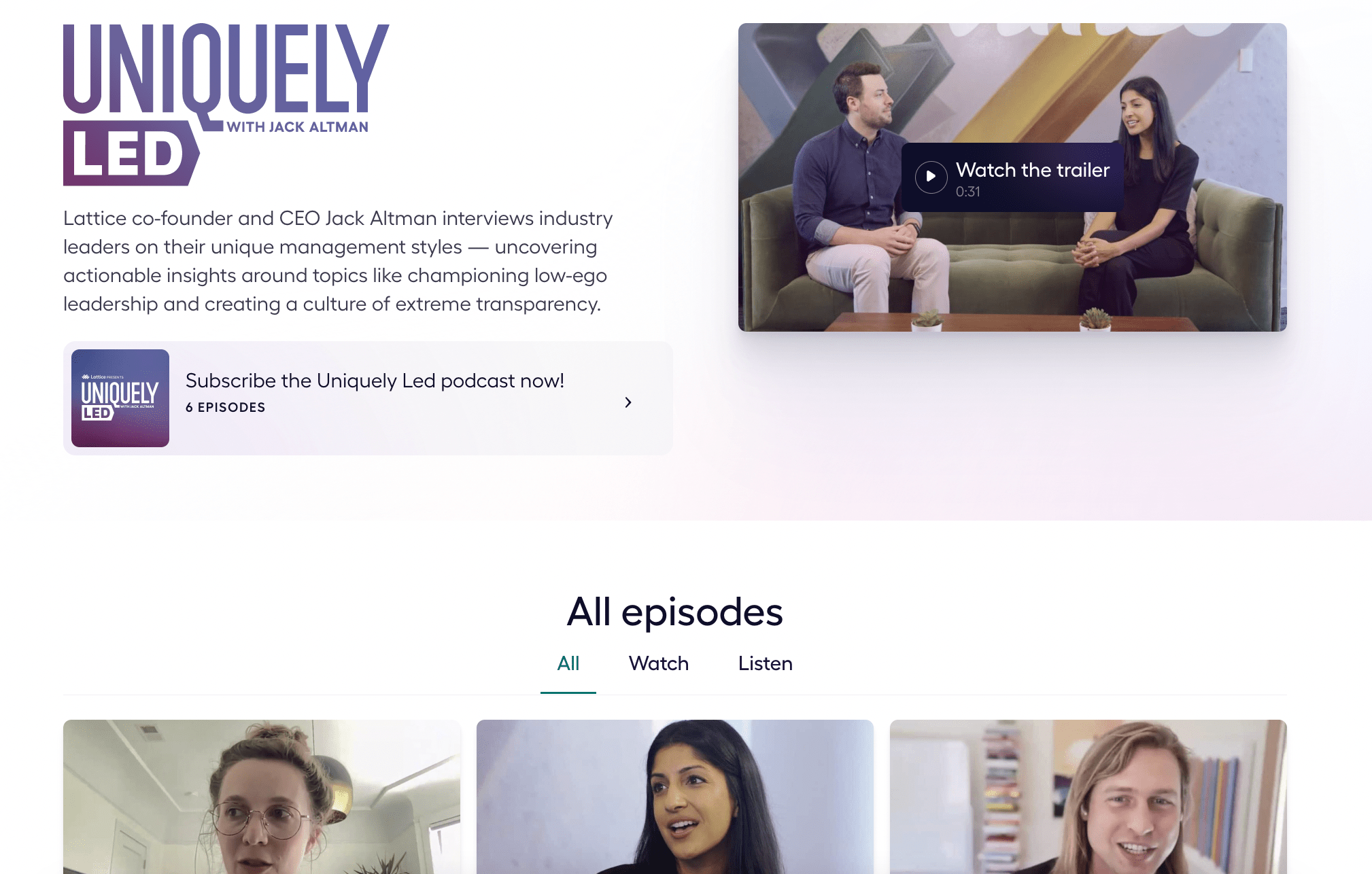 Lattice has another podcast series hosted by Katelin Holloway who talks to CEOs, founders, and leaders about the importance of people management and how people's success is company success.